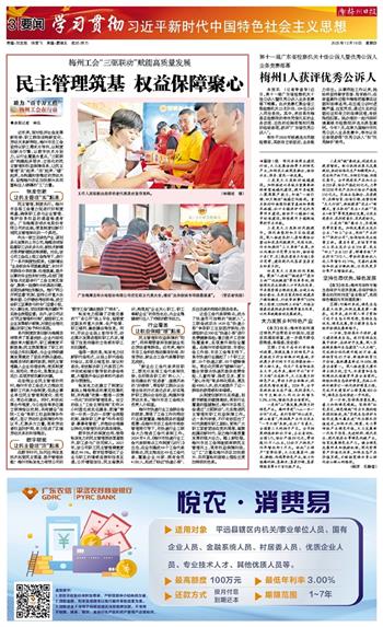 从制度创新的扎实根基,到数字赋能的敏捷高效,再到行业覆盖的温暖触达,梅州市各级工会通过“三驱联动”,扎实推进民主管理和职工权益保障工作。这一系列举措,不仅有效回应了时代课题和职工期盼,更将广大职工紧密团结在党的周围,凝聚起建功新时代、助力梅州高质量发展的强大合力。踏上新征程,梅州市总工会将继续深耕民主管理沃土,筑牢权益保障防线,让“工”力量在梅州苏区加快振兴、共同富裕的画卷上描绘出更加绚丽的色彩。