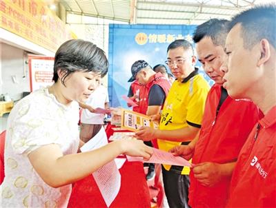 工作人员给新业态劳动者代表发放宣传资料。(林德培 摄)