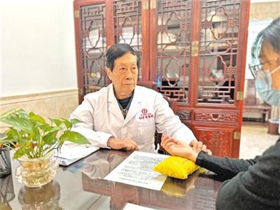 陈礼昌在为患者问诊把脉。(钟文丽 摄)