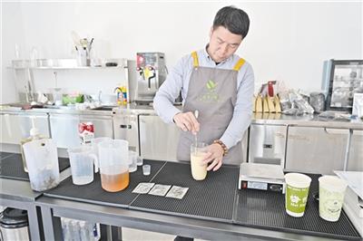 客家炒绿奶茶作为茶类的创新产品之一,应用场景已延伸到高铁、奶茶店等现代生活空间。(叶嘉瑶 摄)