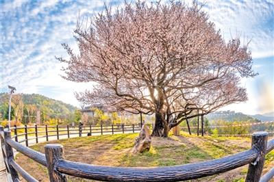 潮塘古梅于寒冬里繁花满枝,在晨光中散发清冽幽香,沁人心脾。(连志城 摄)