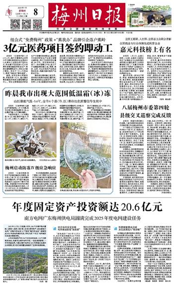 “送电成功!”2025年12月25日,在五华县安流镇的220千伏双安变电站内,现场负责人王宏胜与同事们紧紧盯着屏幕,直到所有参数显示稳定运行,大家悬着的心才终于落下。这座变电站的投产运行,不仅是优化区域网架的关键棋子,更是梅州电网建设按下“加速键”的生动缩影。“2025年是我们电网建设的‘丰收年’,这一年我们紧抓机遇,主动向上争取电网建设投资。”梅州供电局电网规划中心总经理赖阳涌介绍。据统计,该局2025年度固定资产投资额达20.6亿元,完成年初投资目标的137%。“十四五”累计投资预计达90.5亿元,较“十三五”增长28.9%。