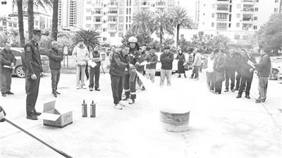 消防员手把手指导经营户规范使用灭火器,及时纠正操作误区。(华宣)