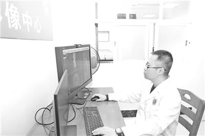 在蕉岭县中医医院,来自番禺区中医院的主治医师谢铭光正在做影像诊断分析。 (汪敬淼 摄)