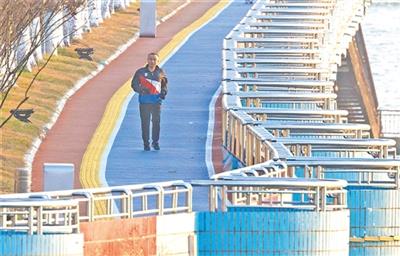 屋顶瓦垄纵横,工人俯身铲除旧瓦,勾勒出劳作的剪影;护坡施工现场,反光背心的亮色在线条分明的坡面跃动,定格建设的瞬间。江畔步道线条蜿蜒,市民奔跑的身影,让寻常日子也溢满活力。