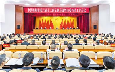 市委八届十二次全会暨市委经济工作会议在梅城召开。(连志城 摄)