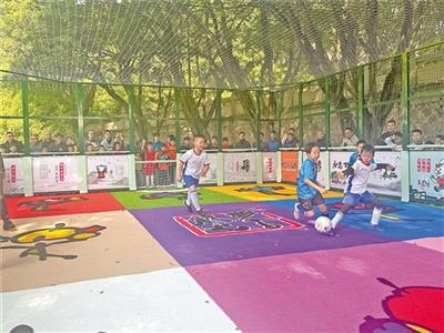 “加油!加油!”“注意防守站位,保持团队配合!”“好球!继续保持状态!”……比赛现场人声鼎沸,与传统足球赛相比,笼式足球的赛场空间更为紧凑,却丝毫没有削弱赛事的激烈程度。赛场上,小球员们配合默契,闪转腾挪间,精妙的传球、犀利的突破和精彩的进球轮番上演,场边观众的加油声、喝彩声以及教练的指导声此起彼伏,激情在围网之间持续升温。