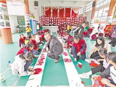 梅江区肩一小学举行“百骏迎新年”现场剪纸活动。