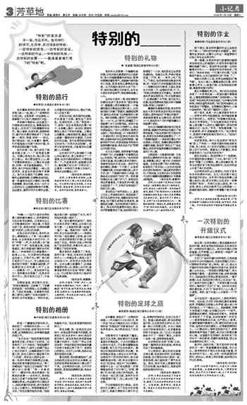 “特别”的意思是不一般,与众不同。在同学们的学习、生活中,有过很多的特别:一段特别的旅程,一次特别的发现,一次特别的作业,一件特别的礼物,一次特别的比赛……一起来看看他们笔下的“特别”吧。