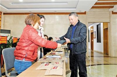 出席会议的市政协委员向大会报到。(林翔 摄)