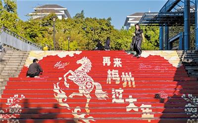 江北老街铺陈的红,伴着市民的笑脸,皆是嘉应古城新春的欢喜注脚。