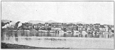 松口全景(逢五、十为墟期,约有商店一千余间,可乘梅松公路汽车达此)。