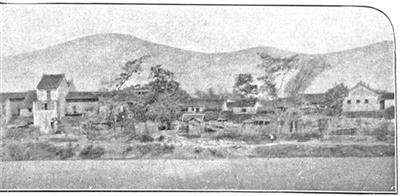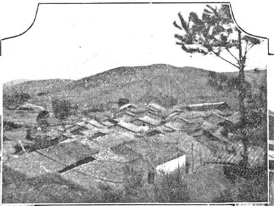畲坑全景(逢二、五、八为墟期,约有商店六百余间,可乘梅畲公路汽车至此)。