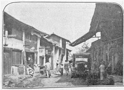 白渡全景(逢一、四、七为墟期,约有商店六十余间,可乘梅松公路汽车达此)。