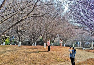 走进一大片梅花林,数百株粉梅、白梅竞相绽放。