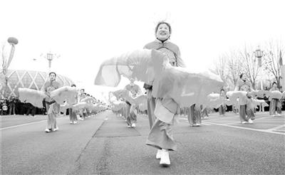 2月26日,人们在河北省灵寿县2026年新春民间艺术巡游展演活动中表演秧歌。