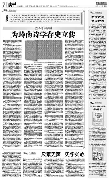 答:《全粤诗话》是对现存岭南诗话文献的全部收集和整理,其出版对中国诗学与地域文化研究也有一定的推动作用。