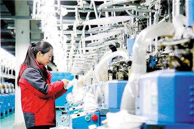 2月25日,在湖北省十堰市郧阳区一家智能纺织企业,工人在生产线上作业。