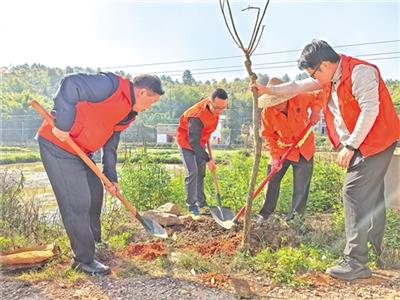 在“党建红”引领“生态绿”的主旋律下,结对共建成为此次植绿行动的常态。合水镇一八村党支部联合阳光义工协会党支部共建“绿美示范林”,将植树与“周二上门去”暖心行动结合,组织党员志愿者走村入户送服务、植新绿;兴宁市委组织部、民政局、教育局等部门分别与挂钩村开展主题党日植树活动,在新洲村、径口村、理中村种下李树、樟树等苗木,以实际行动助力乡村生态振兴;梅州市职业技术学校与新圩镇寨塘村深化校地协作,多年坚持共建“结对共建林”,让其成为校地同心的见证;天河区驻黄槐镇工作队联动爱心企业、嘉应学院科技特派员,为槐东村捐赠200余株秋枫、香樟等苗木,以科技赋能绿化提升,补齐村居景观短板。