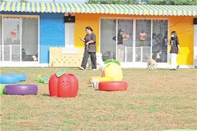 梅州狗爪豆宠物乐园内有许多设施,不少宠主带狗狗在此玩耍。 (吴海清 摄)