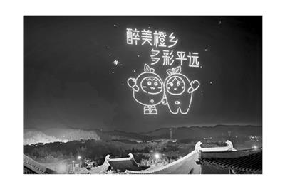 夜幕降临,无人机方阵缓缓升空,灯光次第点亮,瞬间将夜空织成璀璨星河。开篇画面里,一对憨态可掬的橙子形象跃然天际,搭配“平远欢迎你”的温暖字样,瞬间拉近了与观众的距离。