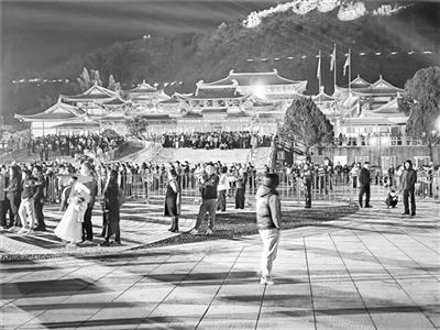 夜幕低垂,佛光大道上人潮涌动,千万灯光腾空而起,在墨色的天幕上徐徐展开。一见倾心,是平远的微笑;万马奔腾,是平远的呼吸。在这片土地上,光与影在黑暗中交织,如同一首无声的诗,一幅流动的画。