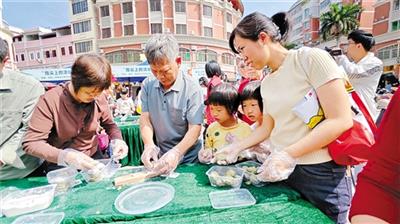梅州举办“我们的节日·清明”全省主题示范活动。图为市民体验清明粄制作过程。(林婉萍 摄)