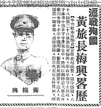 1937年8月,战事爆发后,全国各大报纸如《中央日报》《大公报》《中山日报》等,都根据中央社的统一电讯,报道了黄梅兴将军在“闸北持志大学”阵亡的消息。其中,广州的《中山日报》更是连续两天大篇幅报道,因为黄将军是广东平远人,家乡的媒体自然格外关注。
